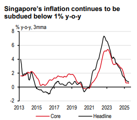 Also, inflation has taken a backseat. Core inflation has remained subdued, averaging 0.6% y-o-y y-t-d as of July, thanks to a broad-based cooling of price pressures. Given falling food prices, benign energy costs, and growth uncertainties, we expect the subdued inflation trend to continue. We lowered our core inflation forecast to 0.6% (from 0.7%) for 2025 but have kept it at 0.9% for 2026. While a low inflation environment opens the door for the Monetary Authority of Singapore (MAS) to ease again, we expect the MAS to remain on hold through our forecast horizon. The MAS’s primary focus is undoubtedly on growth, but fiscal policy should take the lead if headwinds are to materialise.