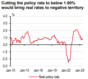 In addition, inflation remains well behaved, as headline CPI decelerated to 1.4% y-o-y y-t-d as of July. Given subdued inflation momentum, we recently lowered our headline inflation forecast to 1.5% (from 1.9%) for 2025 but kept our 2026 forecast at 1.7%.